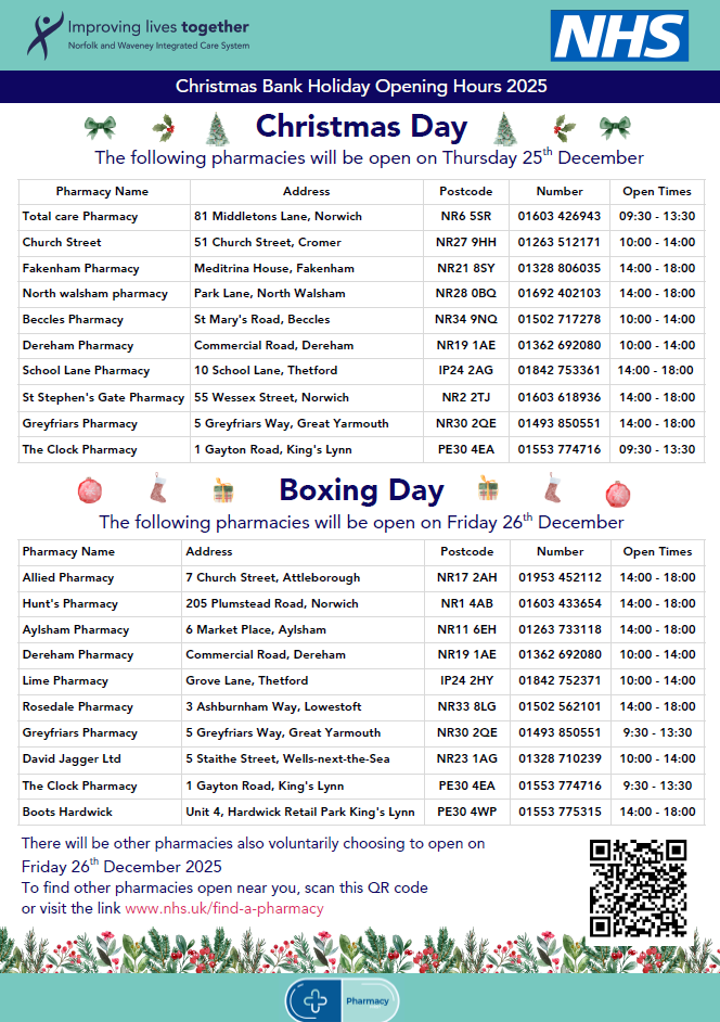Pharmacies Christmas Bank Holiday Opening Hours 2025